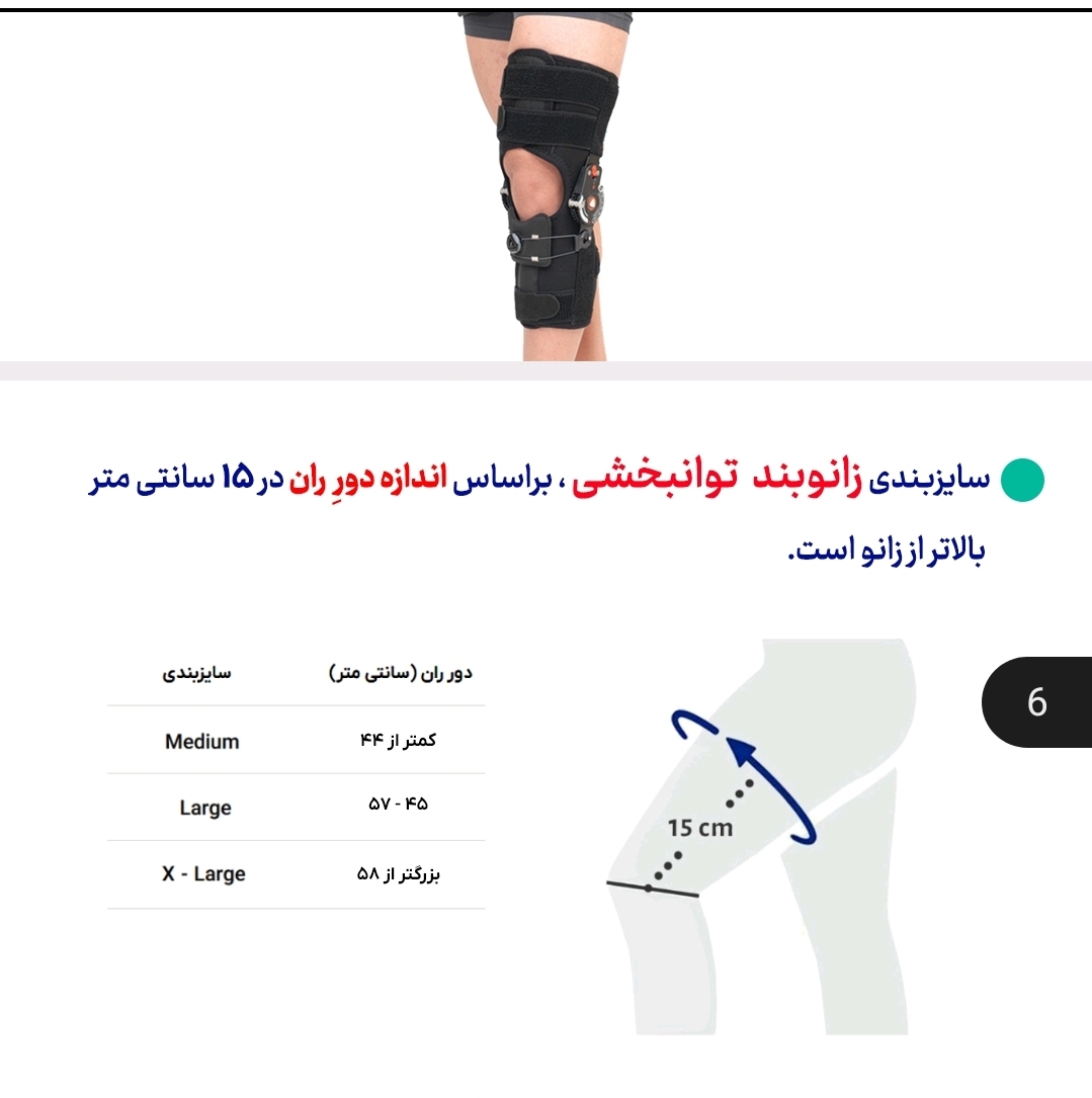 سایز بر اساس اندازه دور ران ۱۵ سانت بالای زانو میباشد
